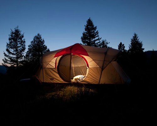 - Feature : 17 ft. x 9 ft. footprint fits ten people or three queen airbeds / Exclusive WeatherTec System Keeps you dry Guaranteed / Cabin structure; heavier, stronger, better for extended stay camping / Two doors for easy access: hinged front and zippered back / Comes with built-in CPX® 6 Overhead LED Lighting system, fan & light switch