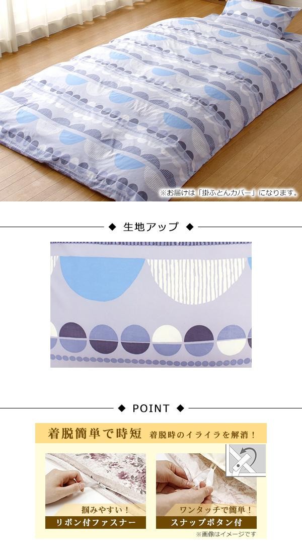 国内で染色し、1枚1枚丁寧に縫製された掛ふとんカバーです。着脱が簡単にできる工夫が施されています。