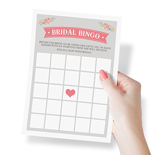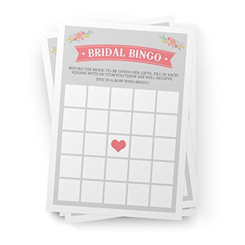 Bridal Shower Bingo Game | Wedding and Bridal Shower Favors, Activities, Games, and Decorations | 50 Sheets
