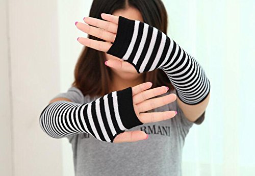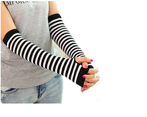 (shopinmall-Arm warmer)/Accessories/Cold Weather Accessories/DIRECT FROM USA/1 Pair of Arm Warmers Fingerless Long Gloves,Stripe