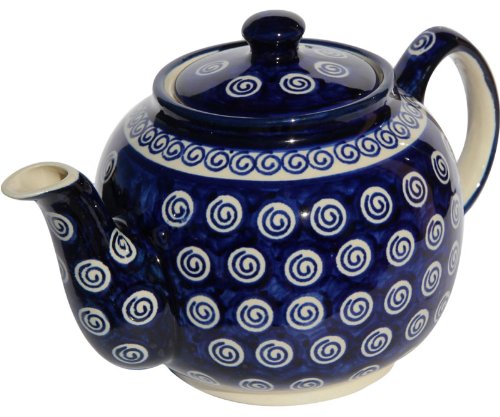 -. Title : Polish Pottery Teapot From Zaklady Ceramiczne Boleslawiec #596-174a Pattern, Height: 5.6" Capacity: 0.9 Qt.