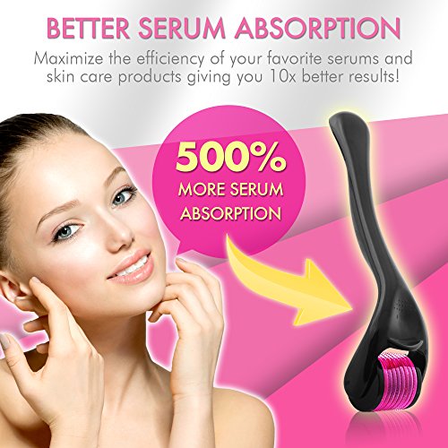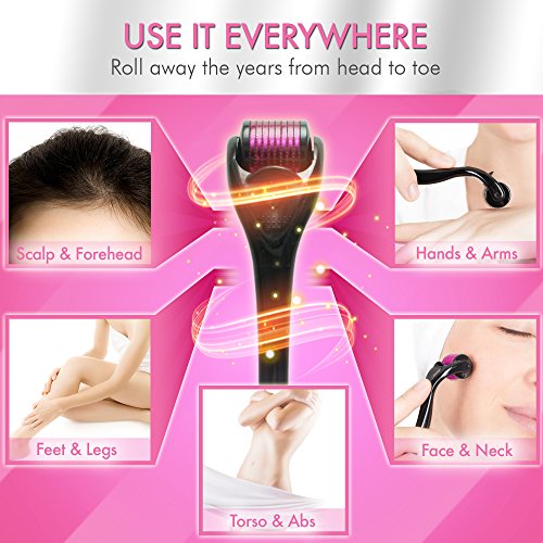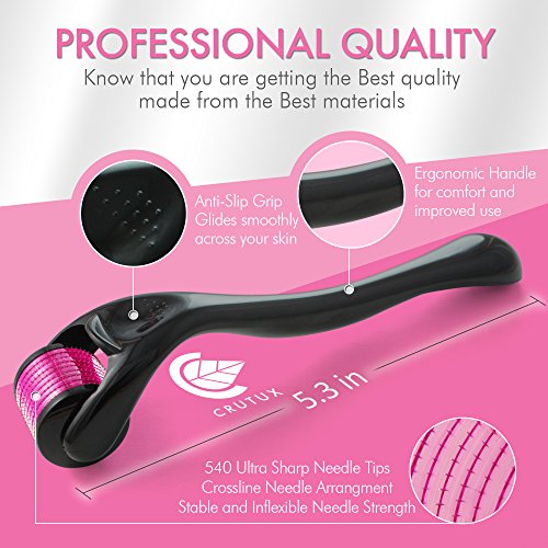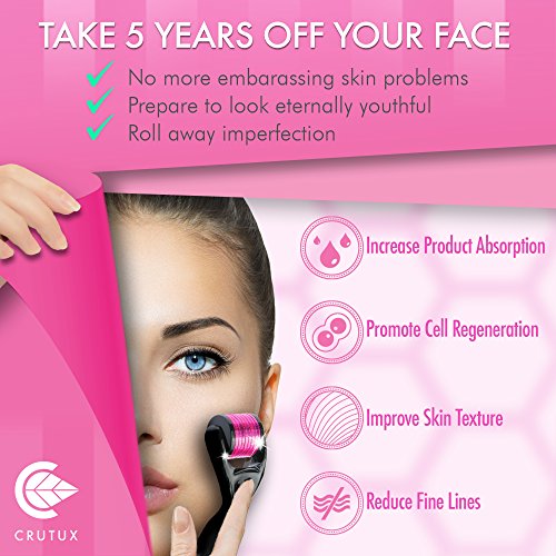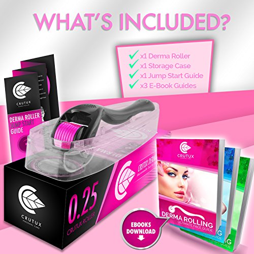 Derma Roller for face 0.25mm by Crutux | FREE BONUS - 3 E-Book Instruction Guides | High Grade 540 Titanium Microneedles | Microneedle Beauty Skin Care Tool | Color: Pink