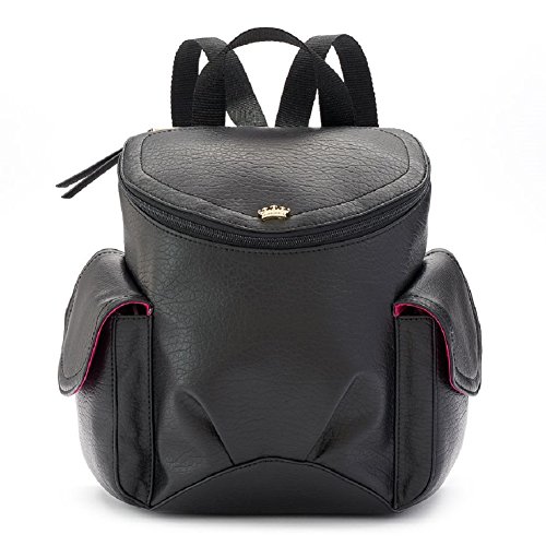 This Juicy Couture backpack takes you anywhere in style. HANDBAG FEATURES Gold-tone hardware HANDBAG DETAILS 11''H x 11.5''W x 8''D Top handle & adjustable straps Zipper closure Exterior: 2 magnetic snap pockets Interior: slip pocket with elastic straps Faux leather