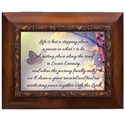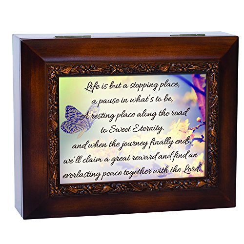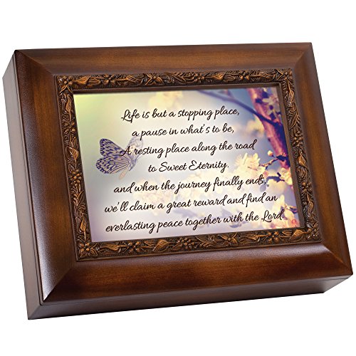 Life Is But A Stopping Place, Eternity With The Lord 9.5 x 8 inch Wood Finish Ashes Memorial Urn Box
