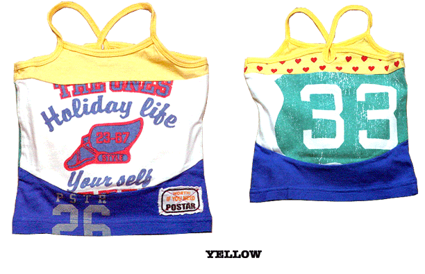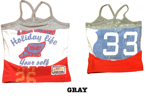 3タイプのプリント地の切替でリメイク風になっているキャミです。