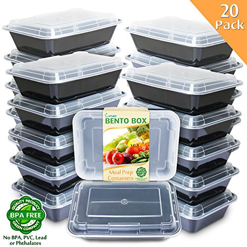 Enther Meal Prep Containers [20 Pack] Single 1 Compartment with Lids, Food Storage Bento Box | BPA Free | Stackable | Reusable Lunch Boxes, Microwave/Dishwasher/Freezer Safe,Portion Control (28 oz)