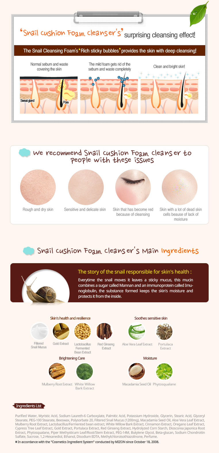 Healthy and firm skin: Snail Secretion Filtrate, Lactobacillus/Soybean Ferment Extract, Scutellaria Baicalensis Root Extract, Red Ginseng Extract