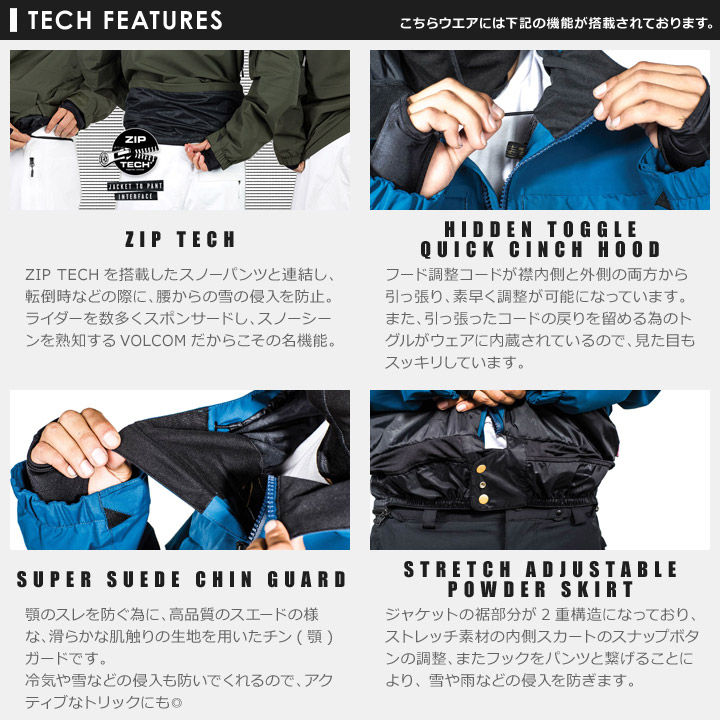 また、王道のブラック、個性派ライダー垂涎のテキスタイルデザインなど充実のカラー展開で、幅広いスノーウェアのコーディネートにマッチするオススメアイテムです。