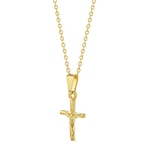 -. Binding : Jewelry -. Brand : In Season Jewelry -. Color : Gold -. Department : Girls -. Feature : Small Cross Crucifix Pendant Necklace for Girls / Crucifix Size: 0.66 in H x 0.39 in W (17mm x 10mm); Chain Length: 16 inches (40cm) / Stylish Religious Jewelry Gift for Children; Gift Box Included / Age Group: Fits Toddlers, Kids and Young Girls / Total Satisfaction Guaranteed: 30 Day Money Back Guarantee -. Label : In Season Jewelry -. Manufacturer : In Season Jewelry -. Model : 06-0152-US -. MPN : 06-0152-US -. PackageQuantity : 1 -. PartNumber : 06-0152-US -. ProductGroup : Jewelry -. ProductTypeName : FASHIONNECKLACEBRACELETANKLET -. Publisher : In Season Jewelry -. Studio : In Season Jewelry -. Title : 18k Gold Plated Small Crucifix Pendant Cross Necklace Jesus Christ Girls 16"