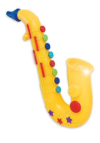 Your child will have lots of musical fun with the Sweet Sounds Toy Saxophone. This toy instrument for kids plays eight notes and can be set to three different activity modes: the saxophone fun mode, with eight pre-programmed melodies; the free-play mode, with two rhythm choices; and the play-it-right mode, which automatically plays some notes correctly. With flashing lights and three sound selections, this saxophone for kids is an engaging way to train young ears. The Sweet Sounds Toy Saxophone operates on two AA batteries, which are included with the instrument.Sweet Sounds Saxophone:Three activity modesSaxophone fun mode has eight preprogrammed melodiesFree-play mode features two rhythm choicesPlay-it-right mode automatically plays some notes correctlyThree sound selectionsEight notesFlashing lightsRequires two AA batteries (included)
