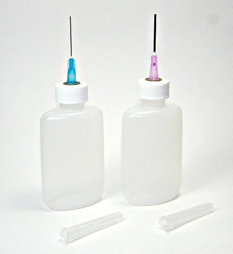 - (2) EMPTY 1-1/4 Ounce LDPE PLASTIC BOTTLEs- (1) 25 gauge small diameter & (1) 18 gauge mid-size diameter dispensing needle tip.