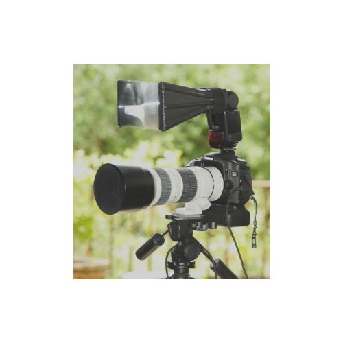 Now there is an easy way to have the extra "flash power" you need in the field. The Flash X-Tender packs flat, weighs less than 3 ounces and sets up in 30 seconds and your flash output is extended a minimum of 2 full f-stops! Bring your birdsand animals to life with an eye highlight. Used and praised by nature photographers world-wide. When used with TTL (Through-The-Lens) flash metering, exposure is automatically handled by your camera and flash, and no special compensation is required.Feature