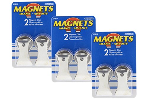 Magnet Source 07219 Chrome Plated Magnet Base with Clip - 1" Diameter, (3 packs of 2)