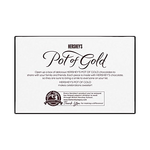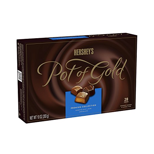 -. Feature : For your next sweet indulgence, enjoy a 10-ounce box of premium, assorted HERSHEY'S Milk and Dark Chocolate and caramel chocolates as a special treat. / Open up a box of delicious HERSHEY'S POT OF GOLD Candies to share with your family and friends, or to treat yourself at the end of the day. / This assortment serves as the perfect gift for special occasions like birthdays, anniversaries, holidays, and more. / Great for gifting, HERSHEY'S POT OF GOLD Boxed Chocolates come in a variety of assortments, so they're perfect for every chocolate lover. These HERSHEY'S Chocolates are OU Kosher Certified. / This product ships as a 10-ounce box.