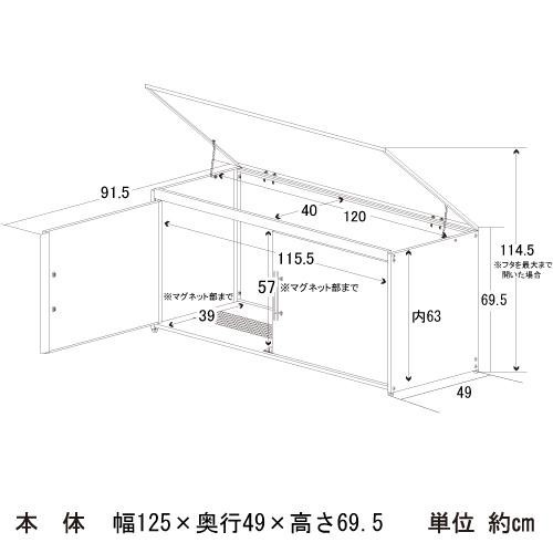 | サイズ | 約幅125×奥行49×高さ69.5cm 個装サイズ:126×66×9cm |