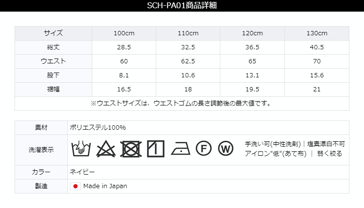 日本製バミューダパンツ サイズ表