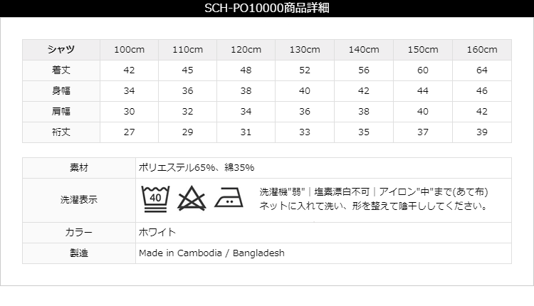 長袖ポロシャツ サイズ表