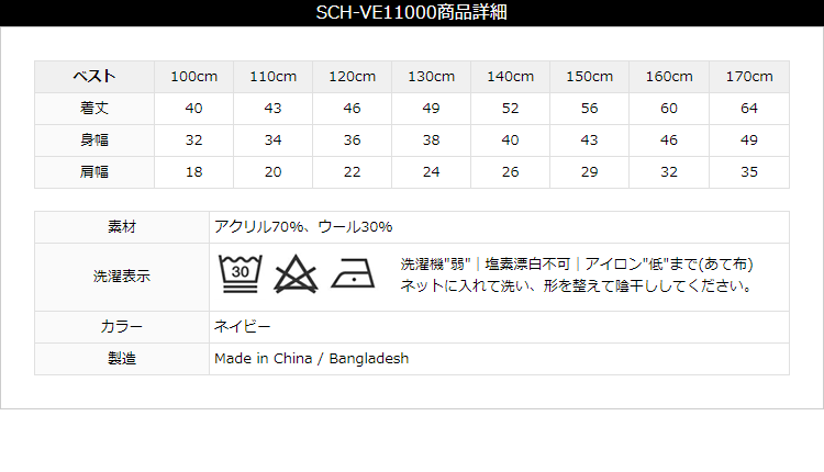 スクールVベスト サイズ表