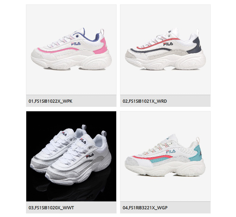 휠라의 대표 어글리 스니커즈인 휠라 레이 디자인을 스포티한 컨셉으로 업그레이드한 2019년 휠라의 대표 어글리 스니커즈전체적으로 부드러운 이미지의 라인과 깔끔한 컬러를 적용하여 휠라의 레트로 감성을 더욱 극대화시키는 스니커즈