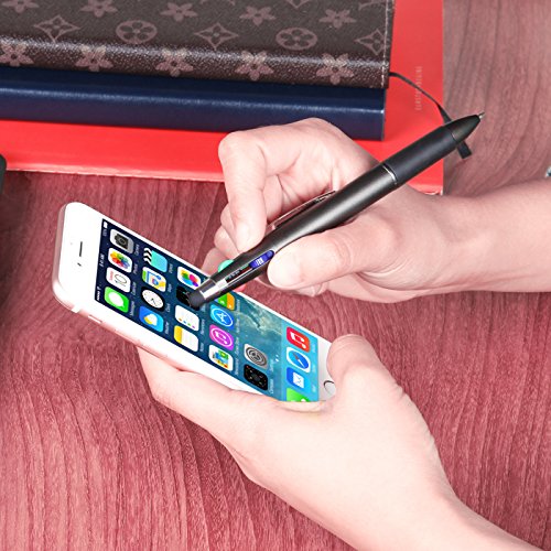 2 IN 1 UNIVERSAL STYLUS PENS - capacitive touch screen stylus on one side for tablets, and ballpoint pen with multi color ink on the other side for writing.
