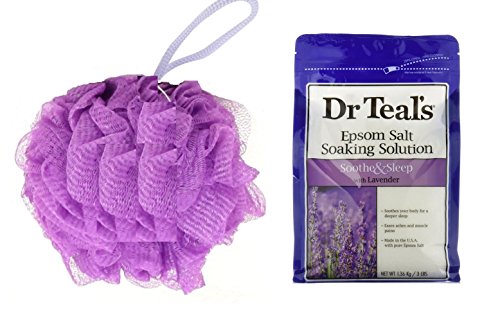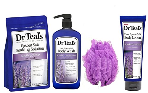 -. Title : Dr. Teal's Epsom Salt Lavender Soaking Solution, 3 lbs Pouch + Body Lotion - 10 oz + Dr. Teal's Ultra Moisturizing Body Wash, Soothe & Sleep with Lavender 24 fl oz + Exfoliating Bath Sponge (4pcs)