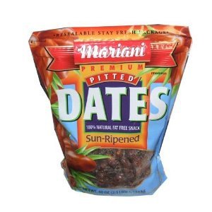 -. Feature : Mariani Premium Pitted Dates 100 Percent Natural and Fat Free Sun-ripened 40 Ounce Resealable Bag / Delicious Sun Ripened Pitted Dates / Resealable 40 Ounce Bag / Known for their delicious flavor, natural sweetness and soft texture. / Picked at the height of sweetness, dates make a great snack!