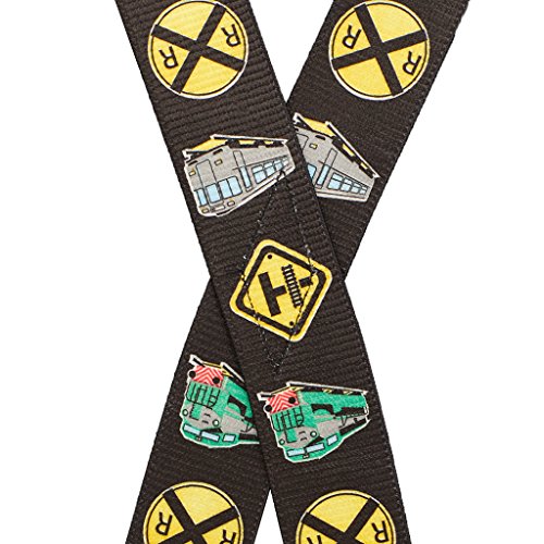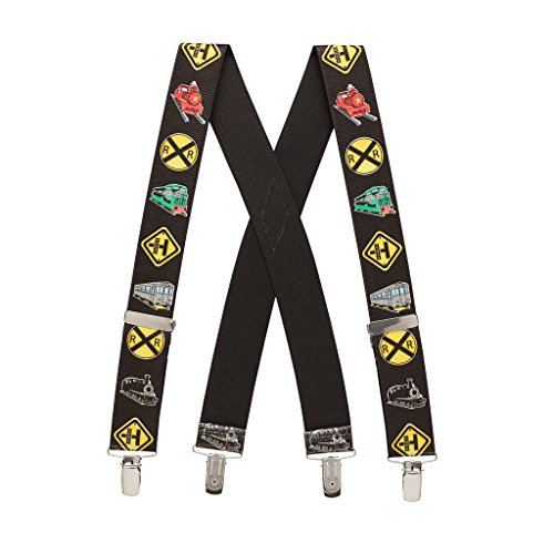 Binding : Apparel Product Description "I think I can, I think I can!" Your favorite little engineer will be the engine that can wearing our snazzy train suspenders! Made from 1.5-inch wide black elastic, these are lined with a variety of train cars and railroad crossing signs. Made with a sewn X-back, these attach to the pants with sturdy nickel finger clips for a stylish hold. Available in a 30-inch size to fit children from ages 2 through 5 years and a 36-inch size to fit most children from age 5 up through 5-feet tall. Available in Adult sizes, too! 0