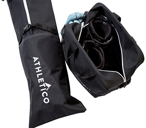 Before you head up the mountain for another run, make sure you keep all your important ski gear close at hand with a versatile Athletico Ski Sleeve and Ski Boot Bag Combo. Skiing is one of the most fun and popular winter sports in the world. But as anyone on the slopes can tell you, there is some very essential gear you need to keep close before you move from the greens to the blacks. That's why you need the Athletico Ski Sleeve and Ski Boot Bag Combo designed to keep all your most important ski equipment dry and within arm's reach. Tough, Water-resistant and Ready for the Snow Crafted with premium water-resistant polyester, our versatile ski sleeve features a 3/4 length wrap-around zipper to easily slide your skis or other gear such as helmet, ski poles, goggles, pants, and jacket. Other features include a padded handle for easy carrying. The ski sleeve fits most skis up to 200 cm, and the boot bag will accomodate most ski boots up to size 13. If you're looking to stay safe on the mountain and keep your essential ski equipment dry and organized, then get the only bag made specifically for skis and ski gear-the Athletico Ski Boot Bag Combo. Product Details: - High-Density Polyester (Waterproof Backing)