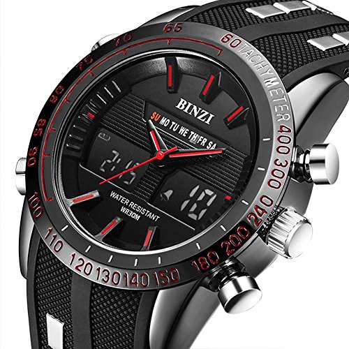 「빈의」BINZI 맨즈 손목시계 다기능 밀리터리 날짜 표시 방수 워치 아날로그 디지탈 표시 파일럿(블랙)BZ-1519R맨즈