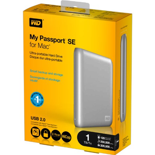 -. Binding : Personal Computers -. Brand : Western Digital -. Color : Silver -. EAN : 0718037764467 -. Feature : Maximum capacity / Compatible with Apple Time Machine / Hardware encryption, password protection / Automatic, continuous, visual backup -. HardwarePlatform : Mac -. IsAutographed : 0 -. IsEligibleForTradeIn : 1 -. IsMemorabilia : 0 -. Label : Western Digital -. LegalDisclaimer : Brand new refurbished hard drive received directly from Western Digital. Unopened and never been used. Not in original packaging and no manual included. USB cord included. Please contact the manufacturer directly for technical support and customer service. -. Manufacturer : Western Digital -. Model : WDBABW0010BSL-NESN -. MPN : WDBABW0010BSL-NESN -. NumberOfItems : 1 -. PackageQuantity : 1 -. PartNumber : WDBABW0010BSL-NESN -. Platform : Windows 7 / Windows Vista Business / Windows Vista Home Basic / Windows Vista Home Premium / Windows Vista Ultimate / Windows XP Home Edition / Windows XP Professional / Mac OS X 10.4 Tiger / Mac OS X 10.5 Leopard / Mac OS X 10.6 Snow Leopard -. ProductGroup : CE -. ProductTypeName : COMPUTER_DRIVE_OR_STORAGE -. Publisher : Western Digital -. Studio : Western Digital -. Title : WD My Passport SE for Mac 1 TB USB 2.0 Portable External Hard Drive (Silver) -. UPC : 718037764467 -. Warranty : 2 - year limited warranty