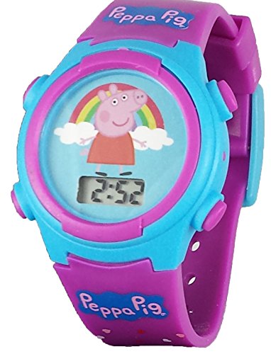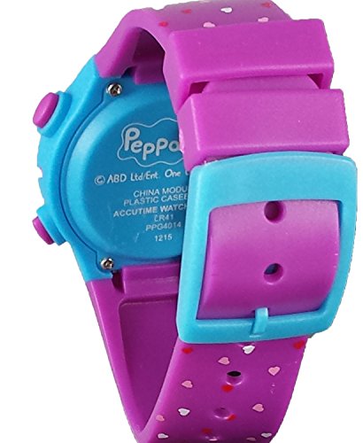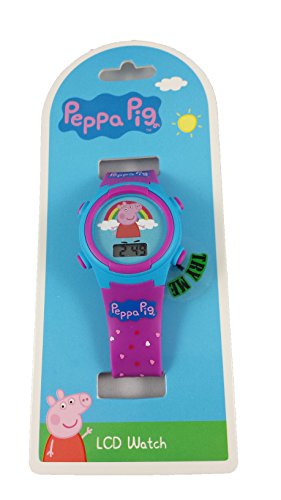 -. Binding : Watch -. Brand : Peppa Pig -. Department : Unisex-child -. EAN : 0030506416685 -. Feature : Face flashes in red yellow and green for 10 seconds with the push of the corner button / Peppa Pig on dial with Rainbow backgroung / Digital Display / Band adjusts from 5.5-8 inches and has a buckle clasp / Colorful hearts running down the entire band -. Label : Accutime -. Manufacturer : Accutime -. Model : PPG4014 -. MPN : PPG4014 -. NumberOfItems : 1 -. PartNumber : PPG4014 -. ProductGroup : Watch -. ProductTypeName : WATCH -. Publisher : Accutime -. Studio : Accutime -. Title : Peppa Pig Kid's Digital Watch with Light Up Feature -. UPC : 030506416685