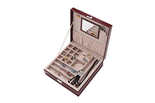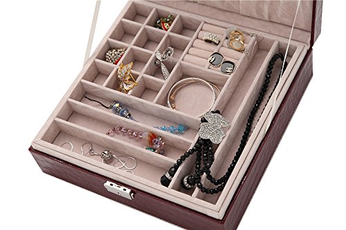 -. Title : NEOTEND Leather Jewelry Box Lockable Storage Organizer Case with Mirror