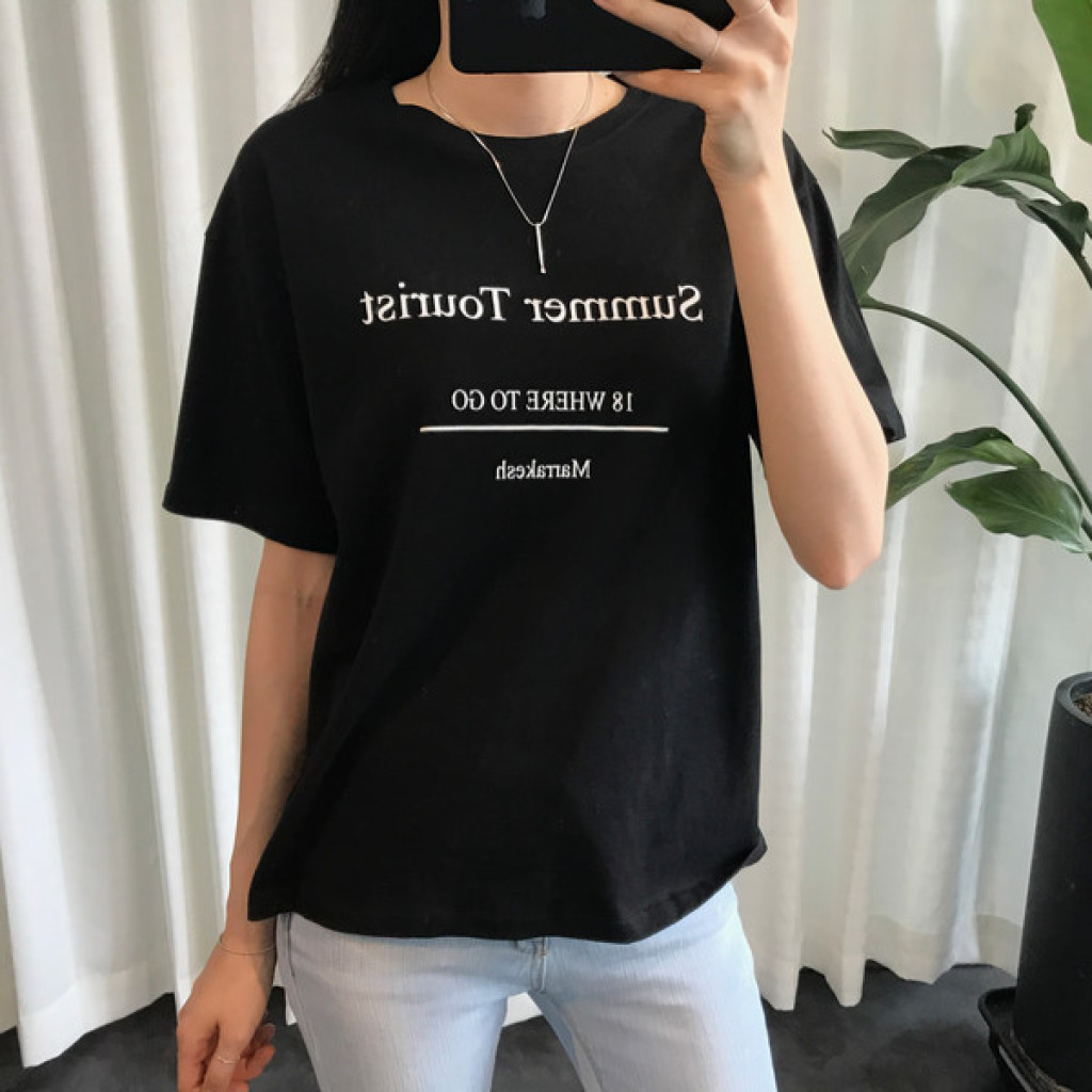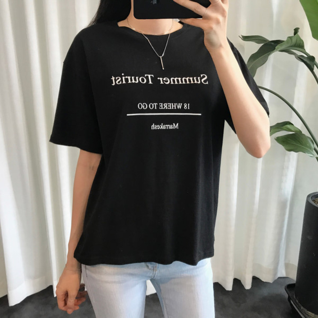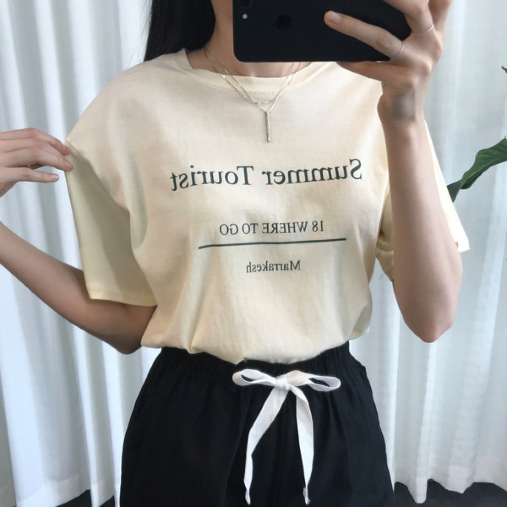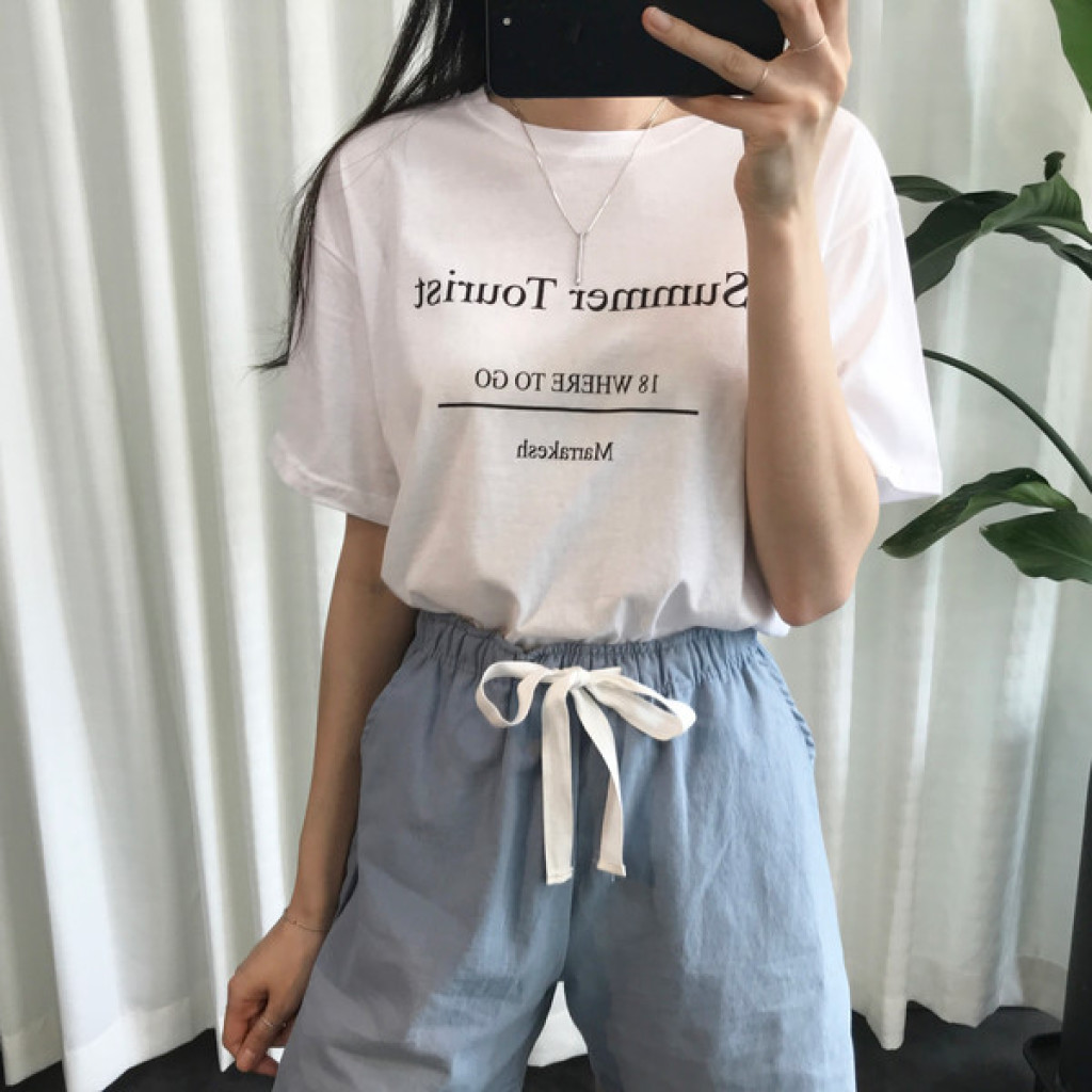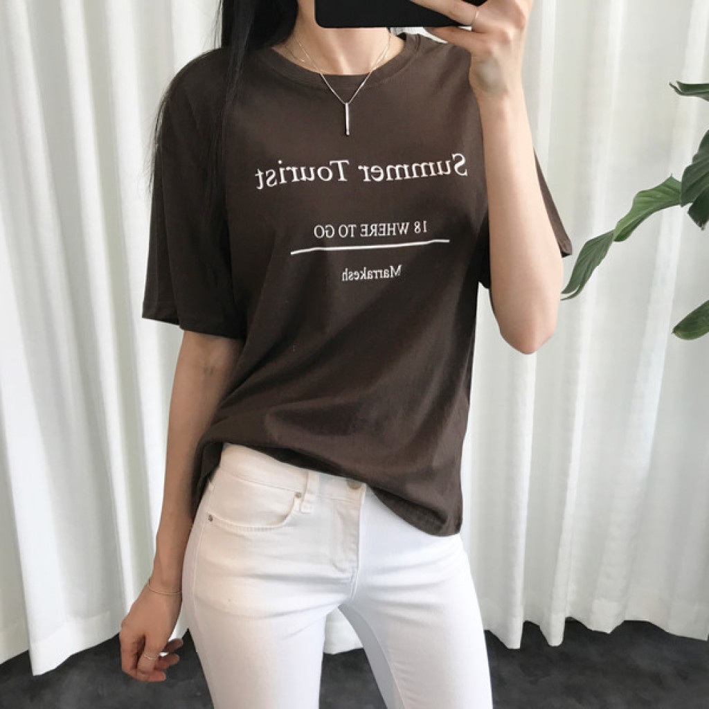 티셔츠 정면에 레터링프린팅으로 포인트가 들어가
