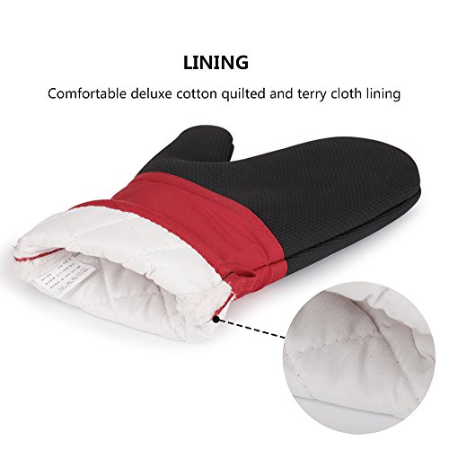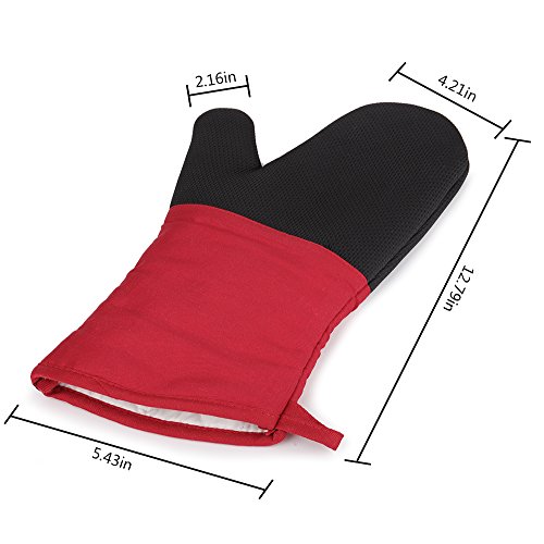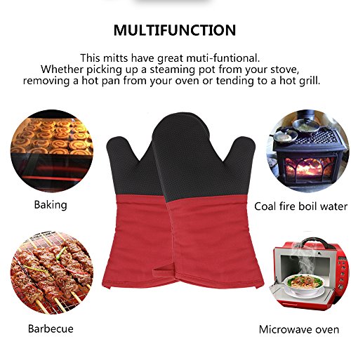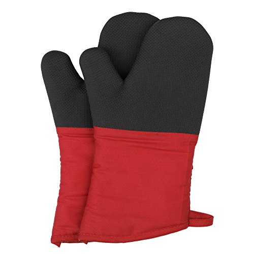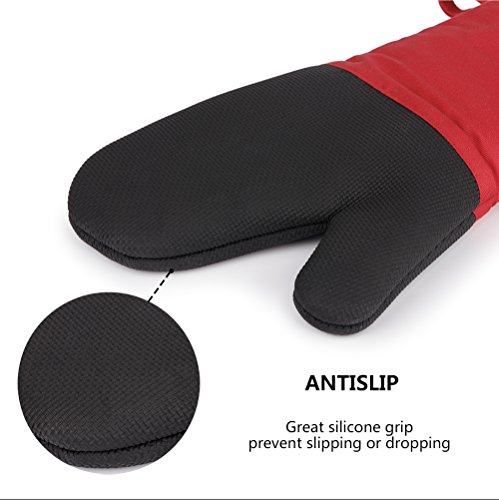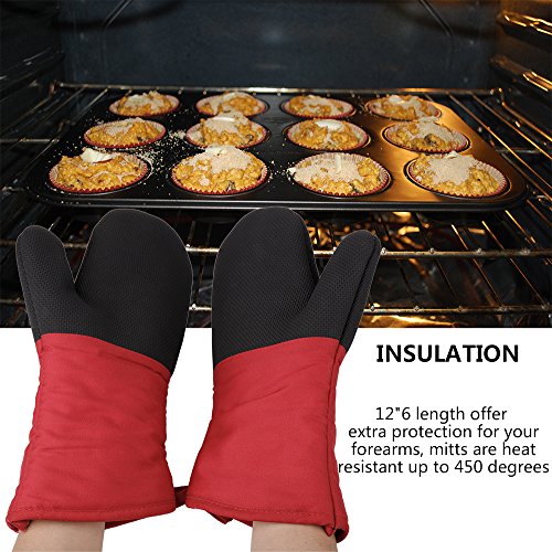 Magician Heat Resistant Oven Mitts - Non-Slip Grip Pot holders for Kitchen Cooking Baking, Up to 450˚F Heat Resistant, Heavy Duty Oven Gloves - 1 Pair (Red)
