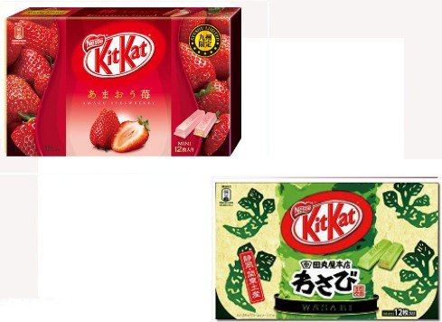 -. Title : Japanese Kit Kat - 2 types! Wasabi & Amao Strawberry Chocolate Box 5.2oz (12 Mini Bar x 2packs)