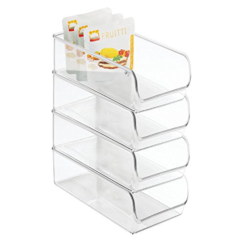 InterDesign Linus Refrigerator and Freezer Storage Organizer Bins for Kitchen, 11" x 5.5" x 3.5", Set of 4, Clear