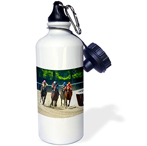 3dRose wb_112489_1 "Group of horses racing, jockeys" Sports Water Bottle, 21 oz, White
