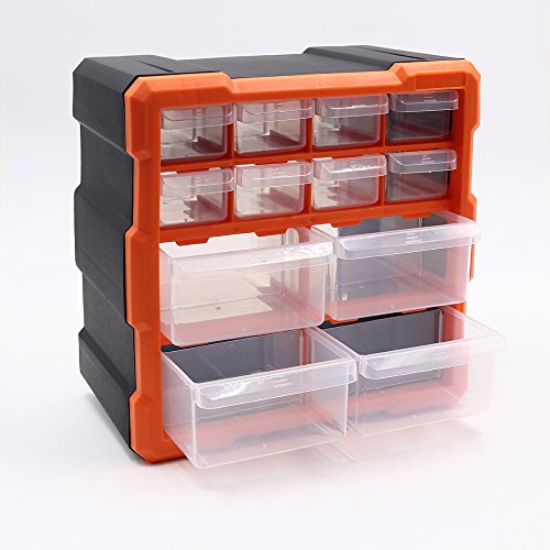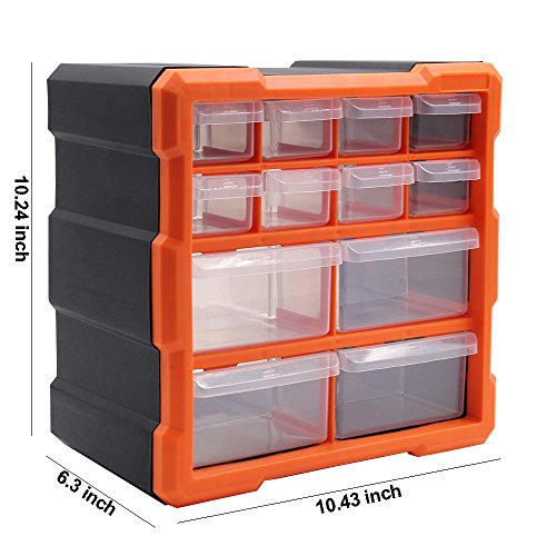 QULife 12 Drawer Plastic Parts Storage Hardware and Craft Cabinet Small Parts Organizer teacher tool box