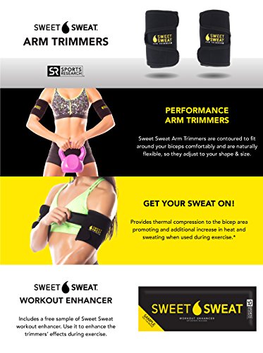 -. Feature : GET YOUR SWEAT ON: The Sweet Sweat Arm Trimmers provide thermal compression to the bicep area promoting and additional increase in heat and sweating when used during exercise.* / PREMIUM: Made with Premium latex-free Neoprene for Superior heat insulation. The trimmer's grid inner lining will not only prevent moisture absorption but also minimize slipping and bunching during your workout.* / CONTOURED & FLEXES FOR CUSTOM FIT: Sweet Sweat Arm Trimmers are contoured to fit around your bicep comfortably, and are naturally flexible so they adjust to your shape & size. / FREE BONUS: Try our bestselling Sweet Sweat Gel, enclosed with every trimmer we sell. Use it to enhance the trimmer's effects during exercise.* / WHAT YOU GET: Comes with 2 premium Arm Trimmers & Sweet Sweat sample.