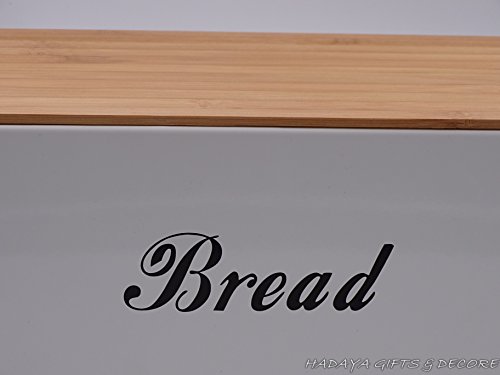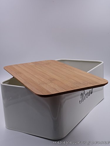 Cute Bread Box For Kitchen - Bread Bin Storage Container For Loaves, Pastries, and More,shabby chic ,with wooden texture lid - Retro / Vintage Inspired Design - Cream Colored White 16.75 x 9 x 6.5