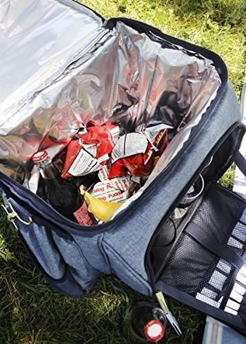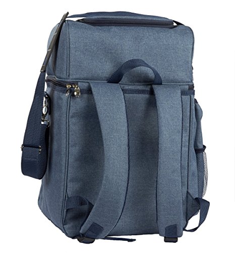 -. Feature : WONDERFUL PICNIC HOUR: Light blue design with only 2.4kg of weight. Just call your friends and have a picnic right away! / ALL IN ONE: Ideal to cater for 4 people and includes all the essential flatware items needed for a small picnic - 4x stainless steel knives, forks, spoons, dinner plates, cotton napkins, plastic wine glasses, salt & pepper shakers, cutting board and 1x bottle opener / FRESH FOOD: The interior of the main empty compartment is made of insulation material aluminum foil that allows you to keep your food in fresh condition. / PACK THEM ALL: The top compartment is empty for storing phones, purse, keys and other accessories. / EASY PEASY: Adjustable and detachablestrap with a shoulder pad design. Suitable for cross body carry or shoulder carry