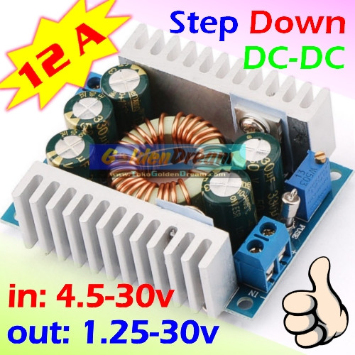 Modul ini dapat menurunkan tegangan input dari batere, trafo, DIY power supply, aki mobil 24v, peralatan penurun tegangan industri untuk digunakan pada peralatan elektronik yang bertegangan rendah