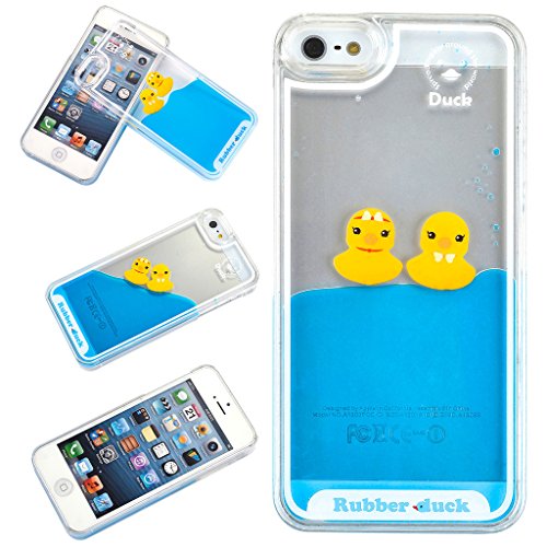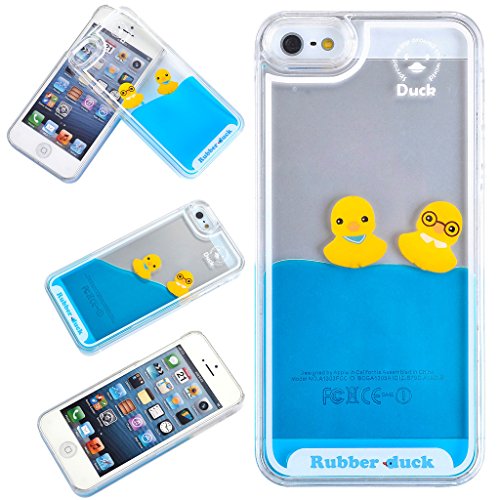 Yoption Liquid Case for iPhone 5 5s SE,Clear Cute Creative Design Liquid Floating Rubber Duck Hard Case Cover for iPhone 5 5s SE(Ducks With Tie)