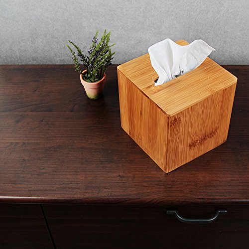 JackCubeDesign Bamboo Square Tissue Box Cover Holder Case Kleenex Cover Holder Box Napkin Holder Organizer Stand(Set of 1, 5.67 x 5.67 x 5.67inches )-MK273A