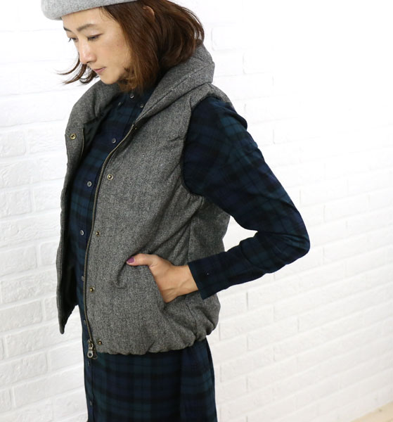 aug(オーグ) ウール レーヨン ショールカラー ダウンベスト・843662