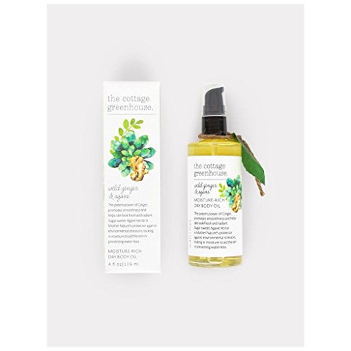Moisture Rich Dry Body Oil: The potent power of Ginger, promotes smoothness and helps skin look fresh and radiant. Sugar-sweet Agave nectar is Mother Nature's protector against environmental stressors, locking in moisture to aid the skin in preventing water-loss. Mother Nature Knows Best: Why Dry is actually Moisture-Rich: Never greasy, Dry Body Oils claim their fame by being a Happy-Hydration treatment that is ultra-light while absorbing quickly and easily into thirsty skin. Our natural Grape seed Oil formula smooths on sensationally and we've added just the right amount of Coconut Oil to nourish even the driest of skin. Not only for after bath & shower. There's so much more: Try in the bath. Great for cuticles. Wonderful for a softer shave as well! Lovely when layered under lotion for even deeper skin conditioning. Massage in and all that remains is the sheer, satin veil that is your "just-from-the spa" glow. Made With: Ginger & Agave Extracts , Coconut Oil, Sweet Almond Oil, Grape Seed. Good to Know: Paraben Free/ Gluten Free/ Never Animal Tested Dimensions: Box: 6" H 1.75" W Container: 6" H 1.75" Fill Weight: 4 fl oz / 118 ml