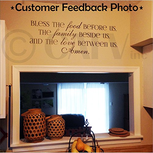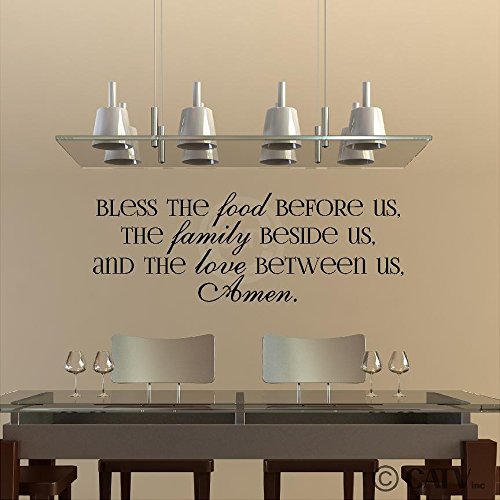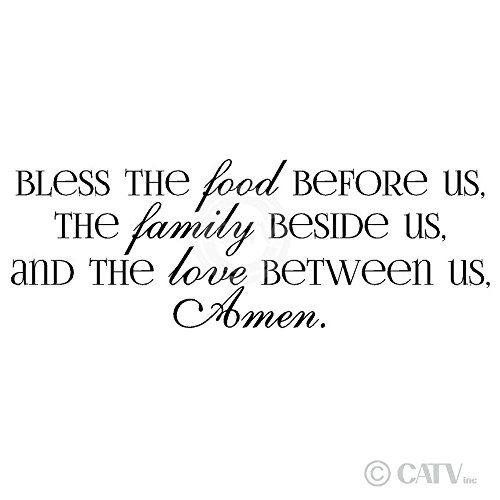 Bless the Food Before Us, the Family Beside Us, and the Love Between Us, Amen Vinyl Lettering Wall Decal (Style A 12.5"H x 35.5"L, Black)