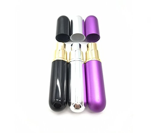 TTKBHHQ Perfume Atomizer Bottles Empty,Set of 3 Black, Purple and Silver 6ml Portable Mini Refillable Spray Bottle Travel Perfume Bottles with 3 Funnel Filler