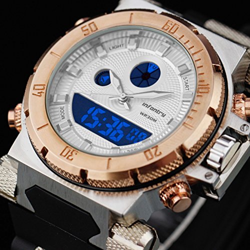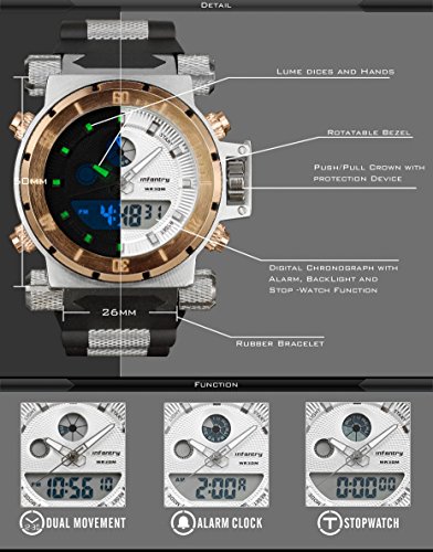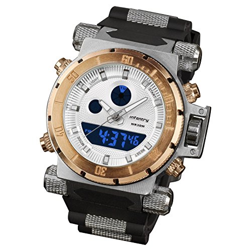 -. Title : INFANTRY Mens Big Face Analog-Digital Multifunction Military Army Sport Wrist Watch Silicone, White Dial