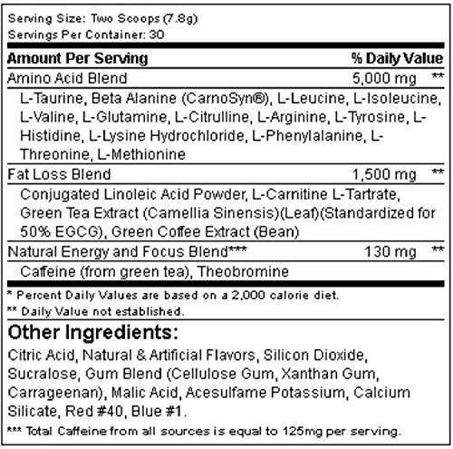 -. Title : RSP AminoLean - Energy & Weight Loss Formula, BCAA Powder with CLA, Green Tea Extract and Caffeine for Building Lean Muscle and Burning Fat, Blackberry Pomegranate, 70 Servings